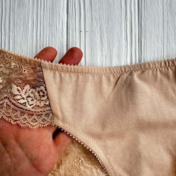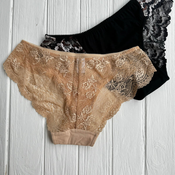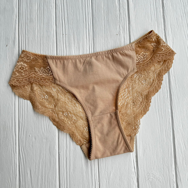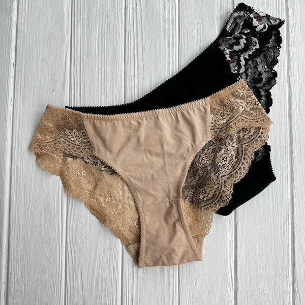 Класічні трусики з бавовни та мережива. Є в двох кольорах класичний бежевий та поєднаний чорний.