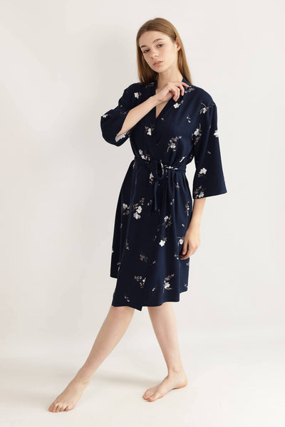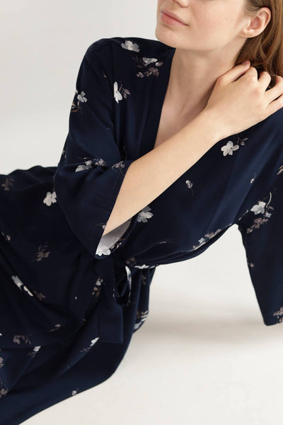 Дуже легкий та приємний халат з віскози з вишуканою обробкою з мережива на рукавах. На поясі.